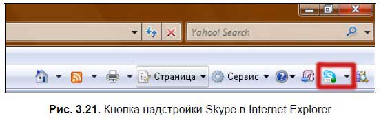 На панели инструментов Internet Explorer находится пиктограмма Skype (рис. 3.21).