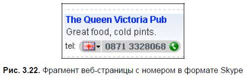 Если нажать на нее, то надстройка будет включена, отжать – выключена. Как пользоваться надстройкой: 1. К примеру, вы зашли на страницу веб‑сайта, где указан номер телефона в Skype‑формате (рис. 3.22).