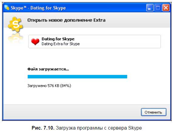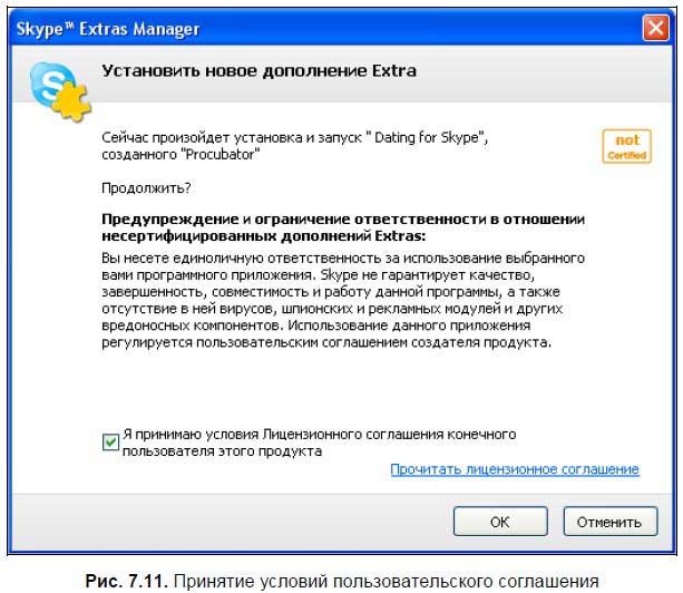 Skype предлагает бесплатно или за небольшую плату дополнительные программы для работы с видео. Список программ содержит Менеджер дополнений Extras для Skype™ , который можно вызвать с помощью команды основного меню программы Skype Инструменты | Доп. возможности | Загрузить дополнения Extras (рис. 7.7).