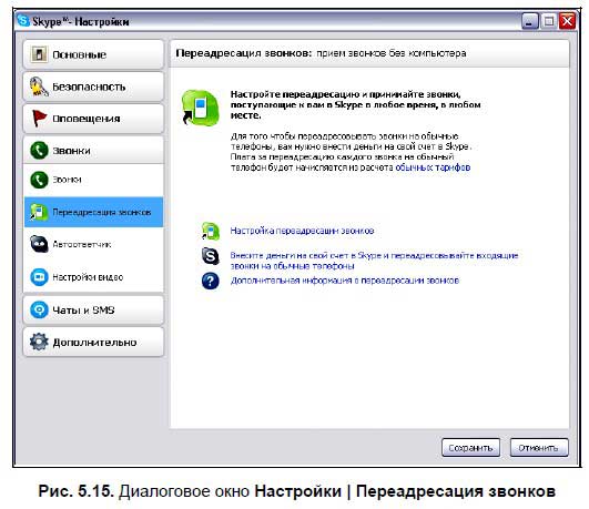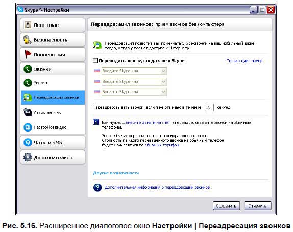 После того как в диалоговом окне, представленном на рис. 5.15, выбрана опция Настройка переадресации звонков , появится новое диалоговое окно Настройки | Звонки | Переадресация звонков (рис. 5.16).