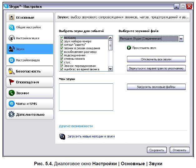 Настройку звука на своем компьютере можно производить в соответствующем диалоговом окне Настройки | Основные | Настройка звука (рис. 5.3), предварительно выбрав в левой части окна одноименную команду.