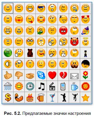 Для того чтобы в чате можно было передать свои эмоции, придуманы значки настроения (рис. 5.2).