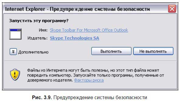 5. Нажмите кнопку Открыть . В появившемся окне предупреждения системы безопасности (рис. 3.9) нажмите кнопку Выполнить .