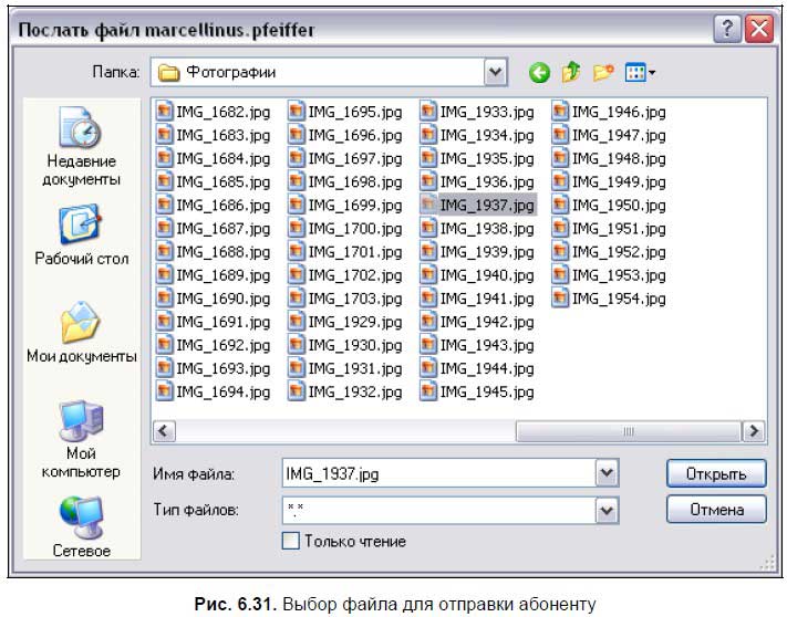 Откроется диалоговое окно (рис. 6.31), укажите, какой именно файл нужно отправить. Нажмите кнопку Открыть .